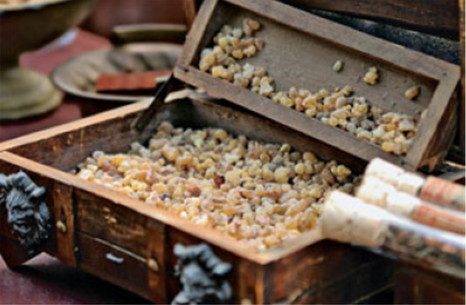 Frankincense merupakan suatu resin dari tanaman genus Boswellia, terutama tanaman Boswellia sacra, dan mur juga adalah resin dari tanaman genus Commiphora, salah satunya adalah Commiphora myrrha. Kata frankincense sendiri berasal dari Bahasa Perancis Kuno yaitu franc encens yang berarti wewangian berkualitas tinggi. Di daerah Semenanjung Arabia kemenyan dikenal dengan nama al-luban yang secara harfiah adalah “hasil dari pemerahan susu” dikarenakan warna resinnya yang seperti susu. Sedangkan mur sendiri berasal dari Bahasa Arab yang berarti pahit.