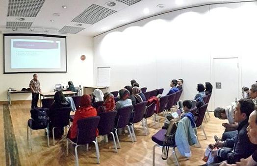 Pemberian penghargaan kepada ibu Dita Sardjono oleh saudari Salma Dwikartika, mewakili pengurus Indosoc Sheffield 2014-2015