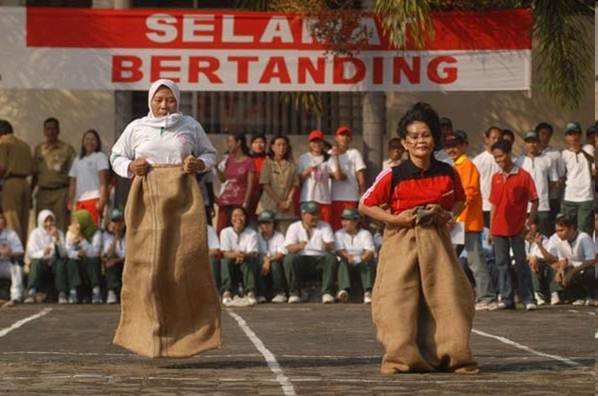 - Balap Karung (Sack Race): Sack race is one of the most popular traditional race on the day Indonesia’s independence. A number of participants required to enter the lower part of her/his body into a sack and a race to the finish line.